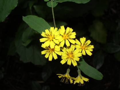 −ヤクシソウ− キク科オオタビラコ属 林間広場から青麻道に抜ける杉林の遊歩道で出合いました。花が少ないこの季節、愛おしさを感じます。 |