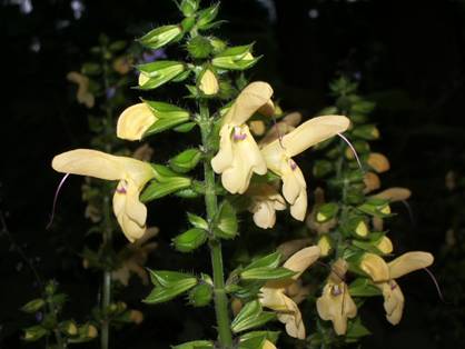 −キバナアキギリ− シソ科 アキギリ属 (黄花秋桐) 比較的暗い場所に群生しています。杉の林などでひっそりと、そして凛として咲いています。 |