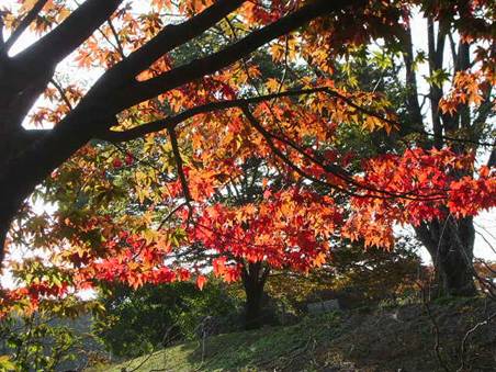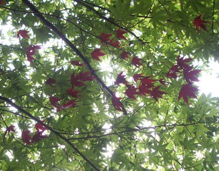気の早い 紅葉 芝生広場東斜面に1本だけ色づいている気の早い紅葉が有ります。周りの木々は未だ緑々としているのですが・・・? |