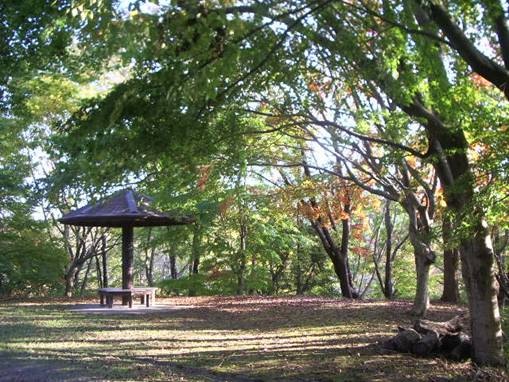 芝生広場の周りのケヤキたちの葉も落ち始め、芝生広場はさながら落葉のじゅうたんになりました。同じケヤキでも場所によっては未だ青々としている樹も見られます。 |