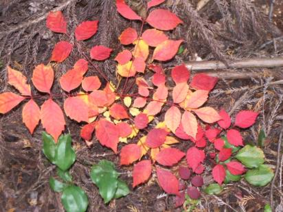 | いま杉の林など散策すると、もう花は見られなくなってしまいましたが、ウルシなどの彩りが鮮やかに目につきます。 散歩するには良い気温となりましたネ! |