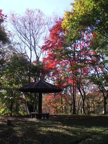 −秋紅葉− 今週鳴子峡の遊歩道が紅葉の見頃と云うニュースが流れていましたが。 県民の森も、やっとちらほら色づき始めました。ここのアヤメ園に通じるアズマヤの周りの紅葉も少し彩をつけ始めました。これからお薦めのスポットです。 |