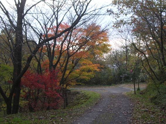 県民の森の木々たちもやっと彩をつけて来ました。 それでも今年の葉っぱは散るのが早い様な気がします。もう少し、みなさんの目を楽しませてから落ちて欲しいな〜、と思いながら歩いています。 |