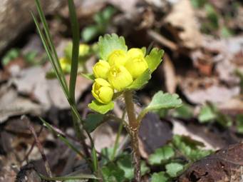4月10日 −コガネネコノメソウ− (ユキノシタ科) ネコの昼間の細い目を思わせる ことからつけられました。 |