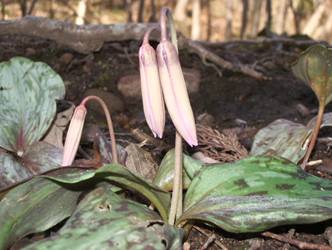 4月10日 −カタクリ− (ユリ科) 和名:片栗 カタカゴ・カタゴ 球根(鱗茎)の形から名づけられました。 |
