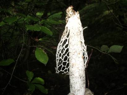 −キヌガサタケ− (衣笠茸) 傘の部分が無くなってしまいました。中華風の料理で食べられるそうですが、なかなか出会えません。 |