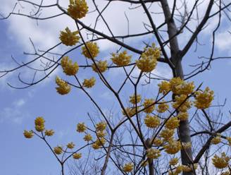 −メ ギ−(メギ科) 枝にトゲが多いのためコトリトマラズとも呼ばれています。鋭い刺針を持っていることから別名ヨロイドオシとも呼ばれています。民間療法の薬用植物とも云われています。 |